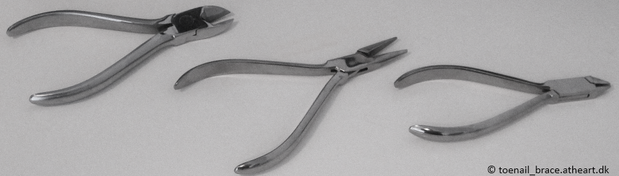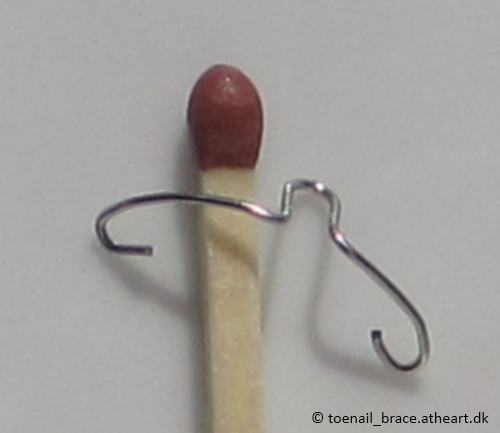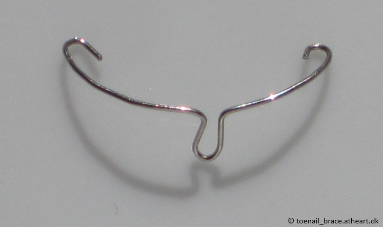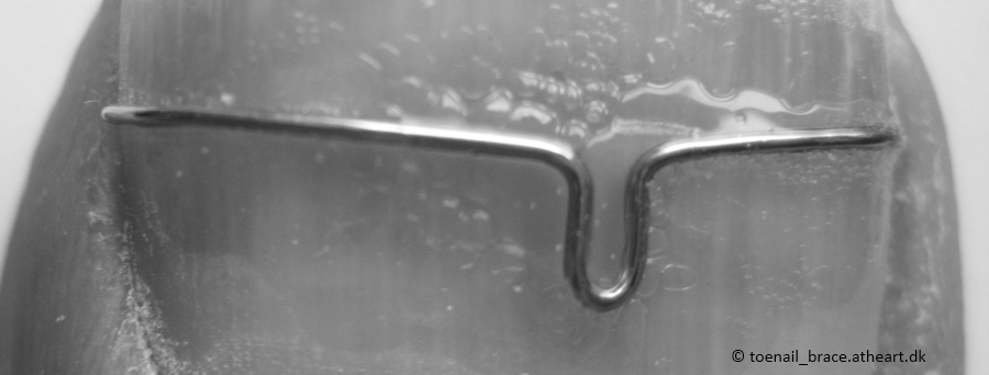 The spring wire is fitted around the left and the right edge of the nail, and the sore side(s) of the toenail is lifted up and outwards by the applied tension. Among other things, the foot therapist has to consider: